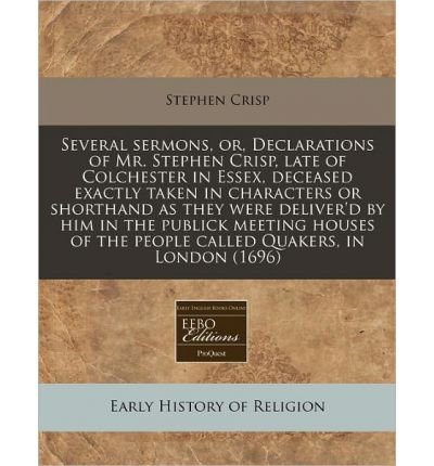 Several Sermons, Or, Declarations of Mr. Stephen Crisp, Late of Colchester in Essex, Deceased Exactly Taken in Characters or Shorthand as They Were Deliver'd by Him in the Publick Meeting Houses of the People Called Quakers, in London (1696) (Paperback) - Common Download Several Sermons, Or, Declarations of Mr. Stephen Crisp, Late of Colchester in Essex, Deceased Exactly Taken in Characters or Shorthand as They Were Deliver'd by Him in the Publick Meeting Houses of the People Called Quakers, in London (1696) (Paperback) - Common or read online here in PDF or EPUB. Please click button to get Several Sermons, Or, Declarations of Mr. Stephen Crisp, Late of Colchester in Essex, Deceased Exactly Taken in Characters or Shorthand as They Were Deliver'd by Him in the Publick Meeting Houses of the People Called Quakers, in London (1696) (Paperback) - Common PDF ePub book now. All books are in clear copy here ...