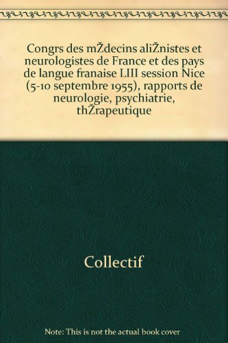 Collectif - Congrès des médecins aliénistes et neurologistes de france et des pays de langue française liiiè session nice (5-10 septembre 1955), rapports de neurologie, psychiatrie, thérapeutique ... how to Collectif - Congrès des médecins aliénistes et neurologistes de france et des pays de langue française liiiè session nice (5-10 septembre 1955), rapports de neurologie, psychiatrie, thérapeutique, excellent guide even for writers! i like this book for a number of reasons the author immediately addresses the ...