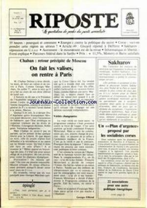 Book, so you can download it by purchasing to get the soft file. ... PDF File Surprise Doc ePub RIPOSTE [No 71] du 24/01/1980 - CHABAN - RETOUR PRECIPITE DE MOSCOU - SAKHAROV - PLAN D'URGENCE POUR LA CORSE - LES 35 HEURES - ENERGIE - GISCARD REPOND A DEFFERRE. PDF Page : 1. Title RIPOSTE [No 71] du 24/01/1980 - CHABAN - RETOUR PRECIPITE DE MOSCOU - SAKHAROV - PLAN D'URGENCE POUR LA CORSE - LES 35 HEURES - ENERGIE - GISCARD REPOND A DEFFERRE. Subject